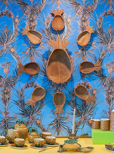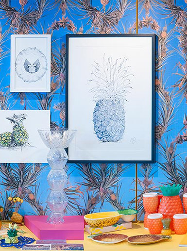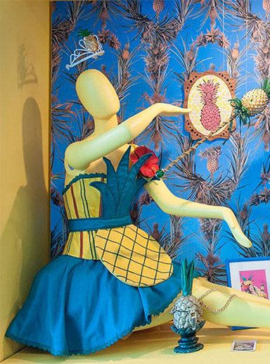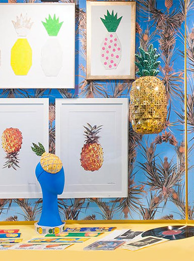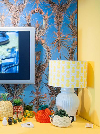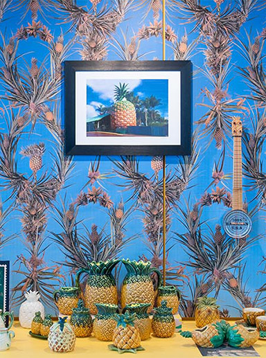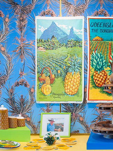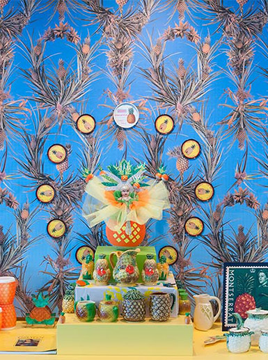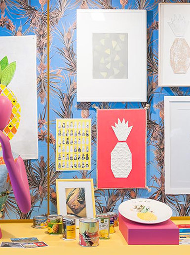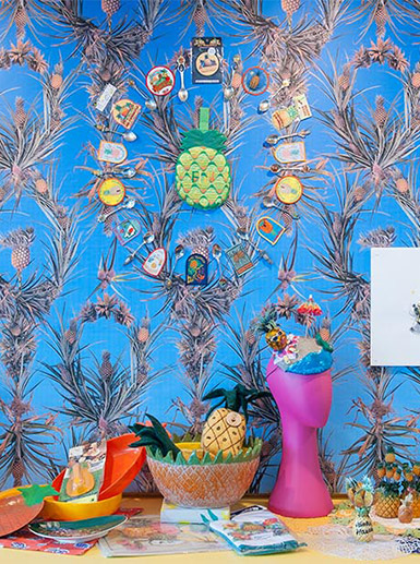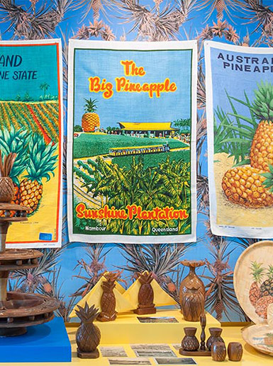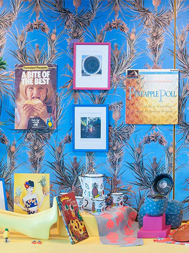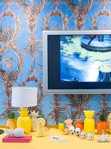 As part of 'Harvest: Art, Film + Food' at GOMA from 28 June to 21 September 2014, Fallen Fruit present a site specific installation of the pineapple. Fallen Fruit of Brisbane: Pineapple Express! 2014 comprises of a major photographic-collage pineapple wallpaper, video and a large-scale cabinet of pineapple-related objects and paraphernalia featuring objects from local members of the public.